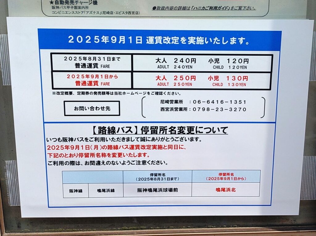 同時に、バス停名も鉄道駅に隣接するものは阪急芦屋川駅のように「駅」が付くように改められています。