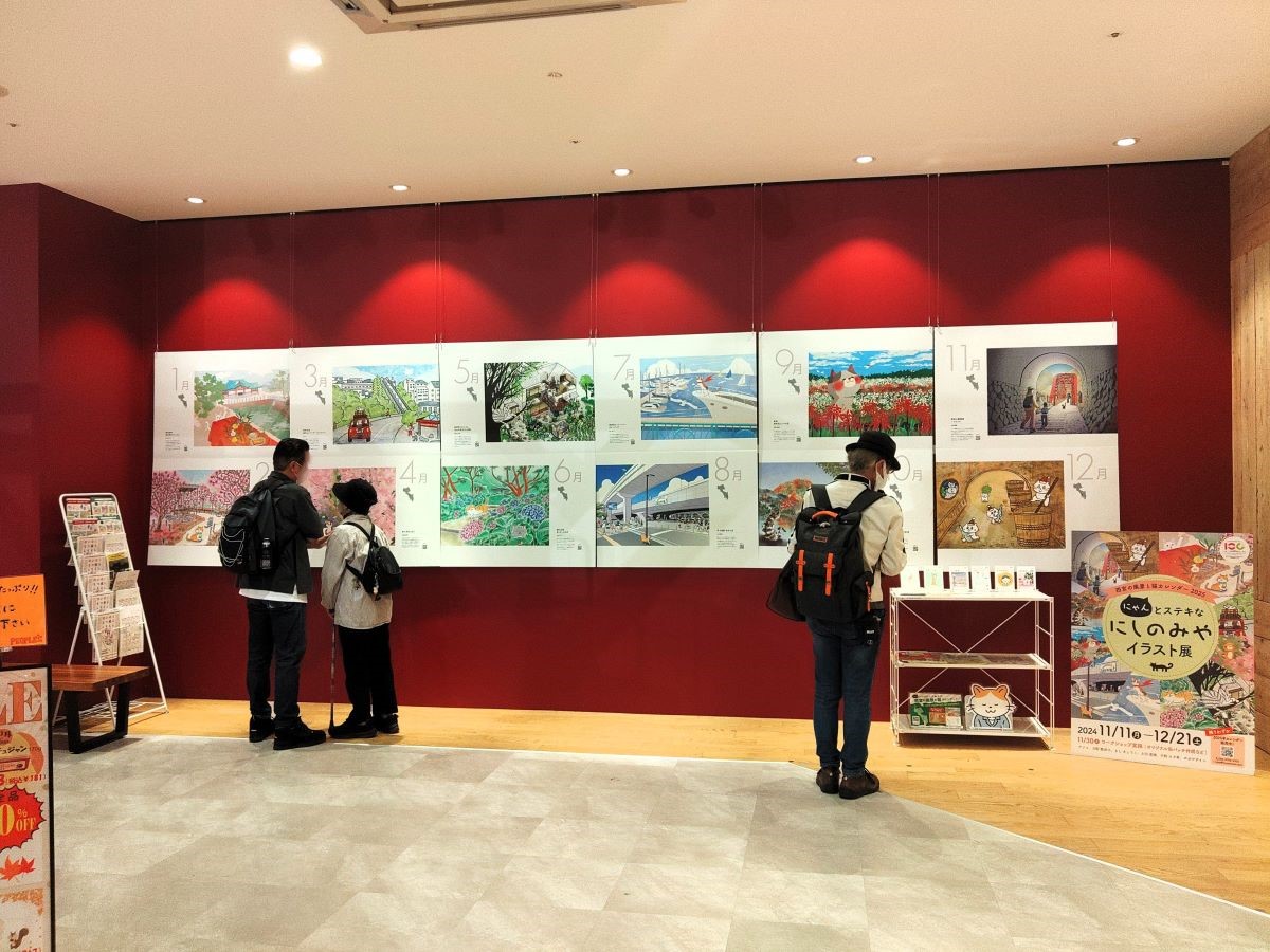 これは、今年9月に発売された猫カレンダー2025「にゃんとステキなにしのみや」のイラスト展示を行うもの。