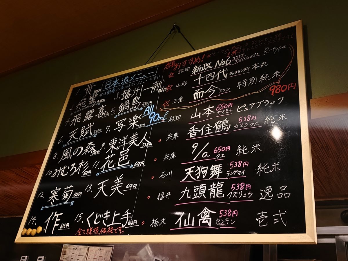 カウンターの上にはさらに地酒専門のメニューがあり、つい目移りしてしまいました。