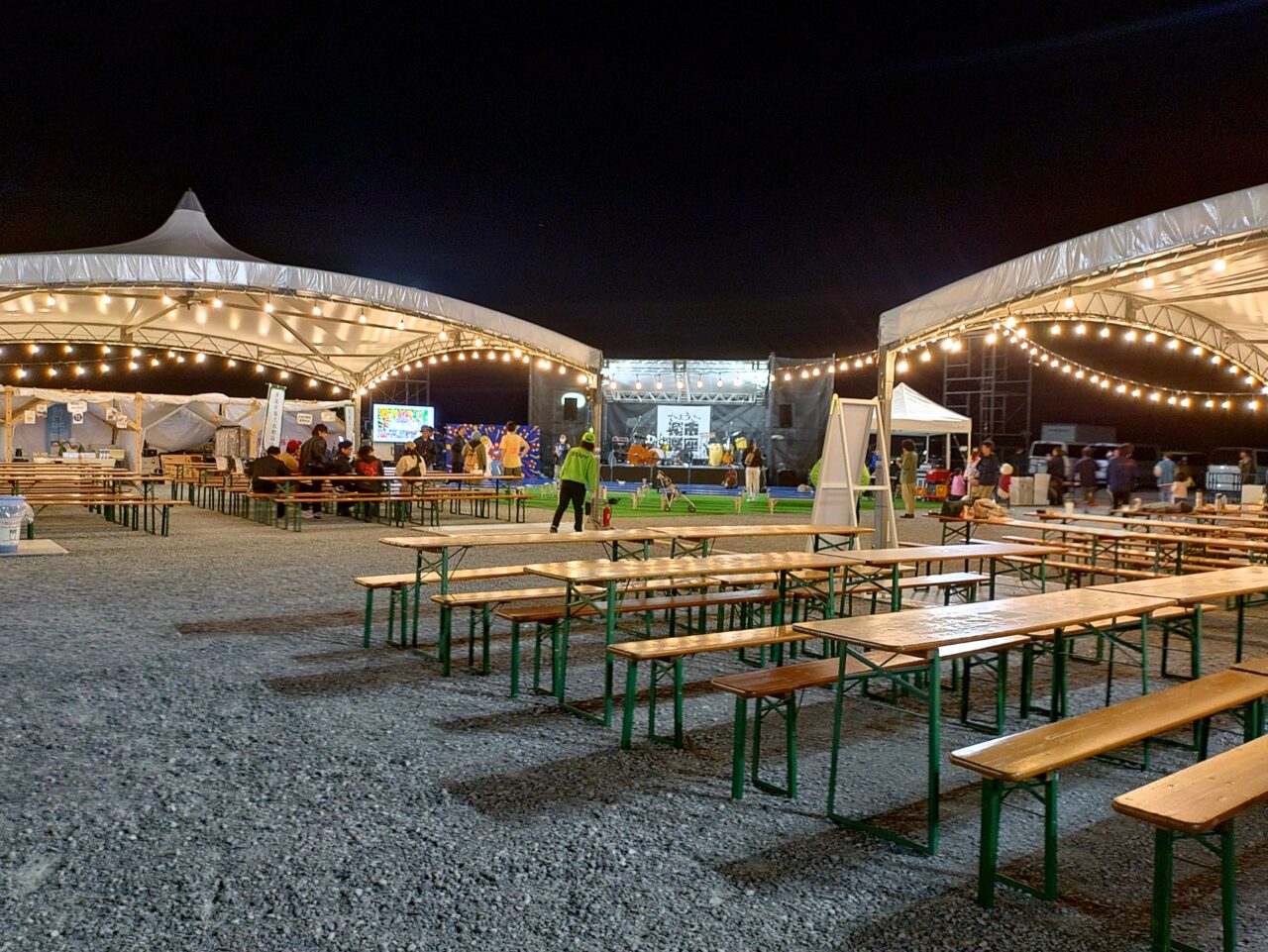 中心部のテントには多くのテーブル席が設けられているので、ゆっくりとイベントを楽しめます。