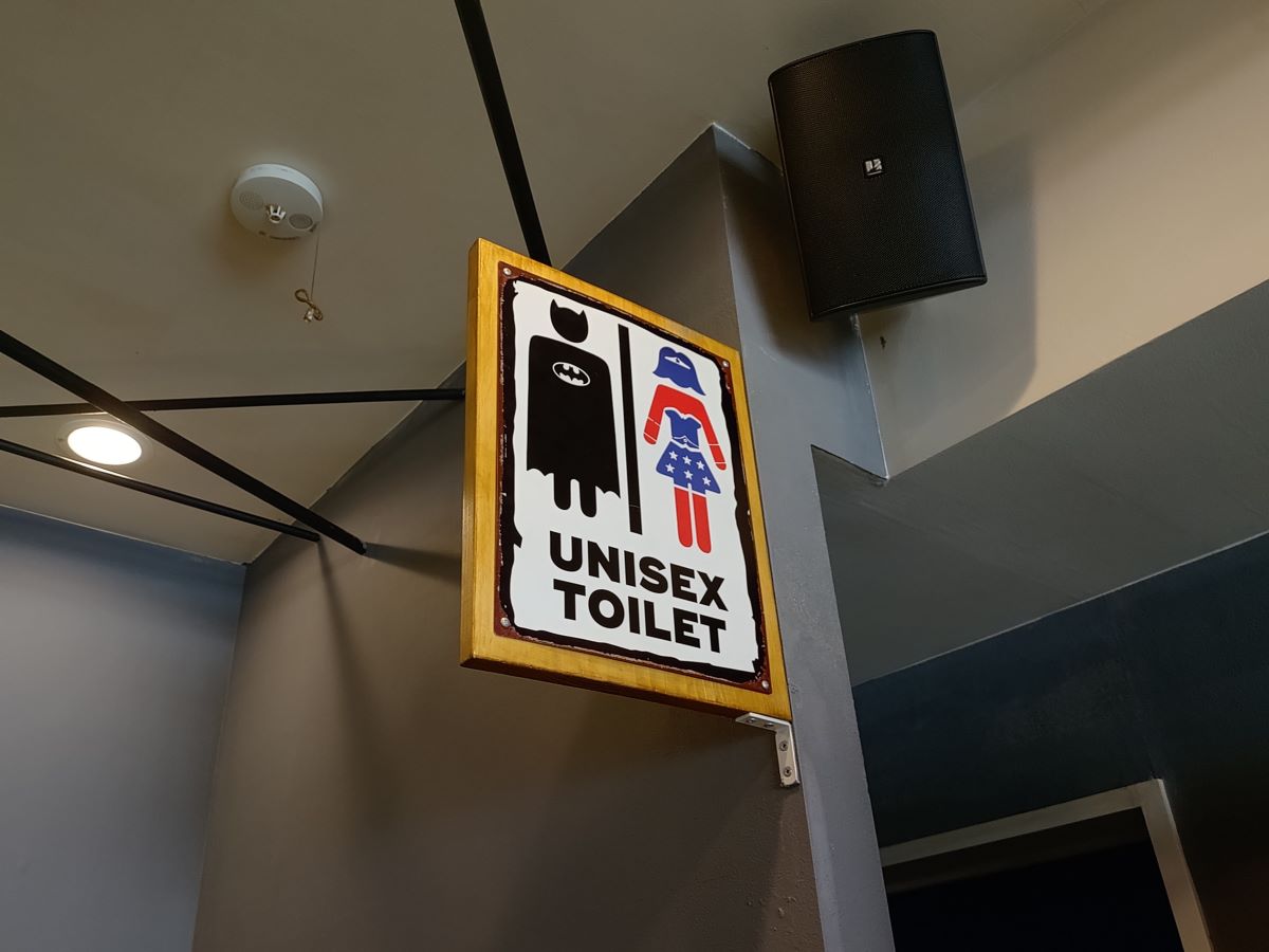 お店の方から「こちらもおススメですよ」と言われたのは、アイコンに男性=バットマン、女性=ワンダーウーマンをモチーフにしたトイレ。