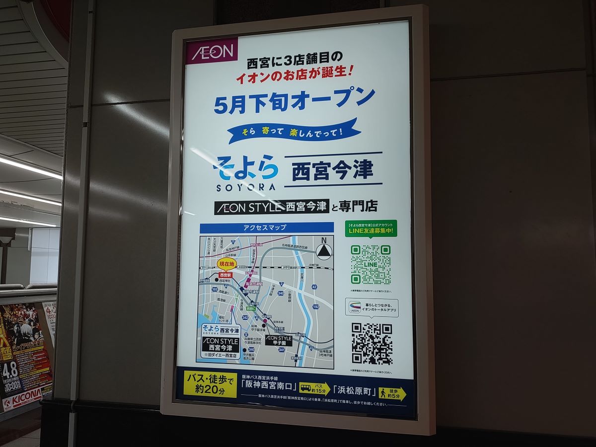 4月18日(金)に阪神西宮駅に立ち寄った時には、グランドオープンの日が「5月下旬」とされていました。