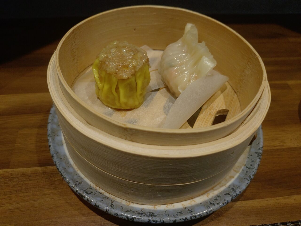 これだけでも十分満足なのですが、さらに点心2種(カレー焼売と蒸し餃子)が続き、