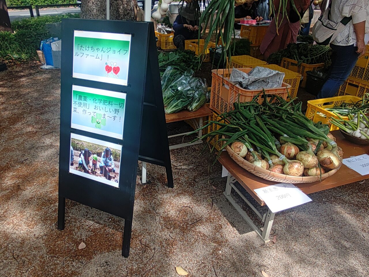 会場には、朝採れの野菜を並べるテントを中心に、様々なお店が軒を連ねています。