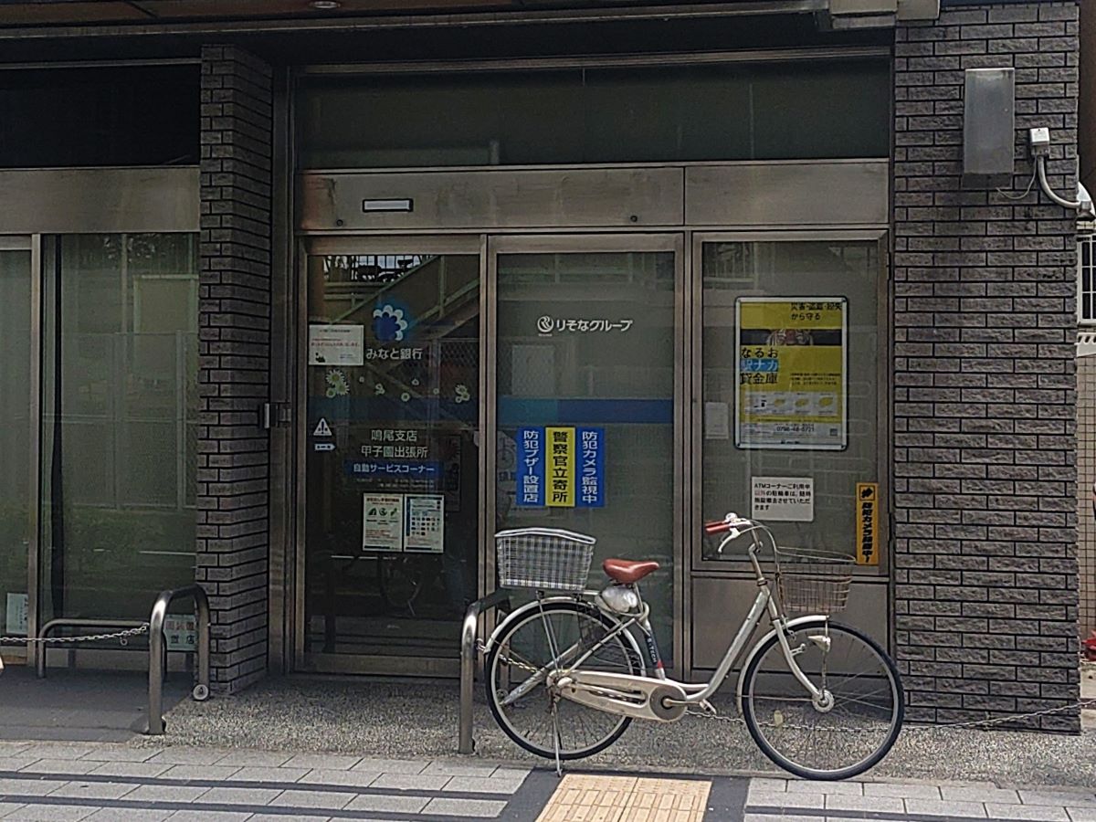 側面を見ると、みなと銀行 鳴尾支店 コロワ甲子園出張所と書かれていました。
