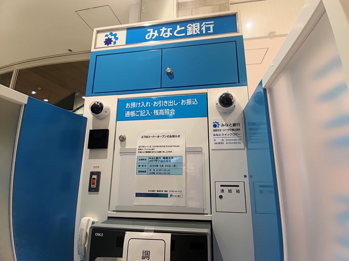 【西宮市】5月26日、コロワ甲子園にみなと銀行鳴尾支店コロワ甲子園出張所が誕生!館内で4社目のATMとなります。