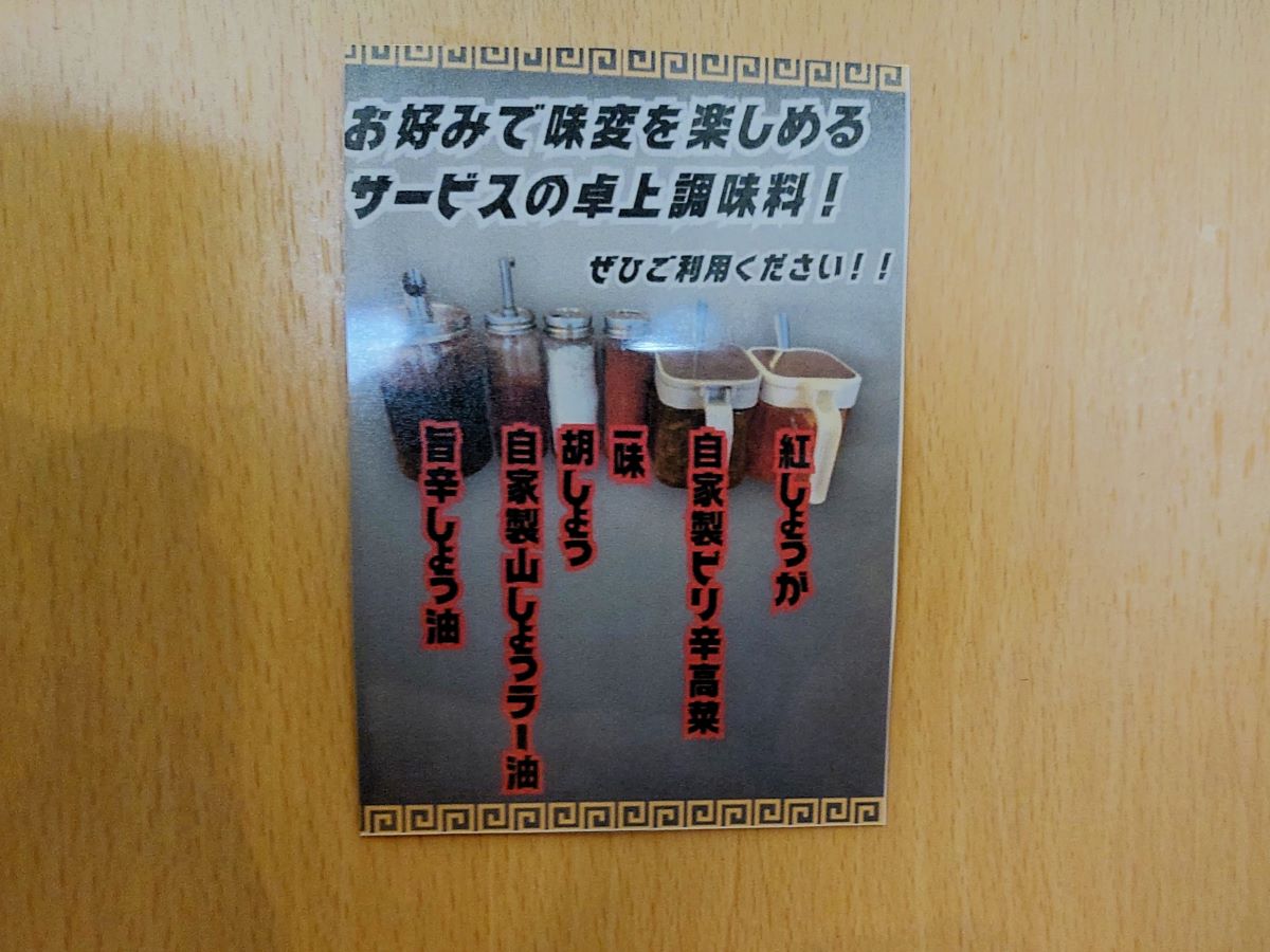 テーブルには様々な調味料が置いてあり、それらを自由に組み合わせて”味変”出来るとのこと。