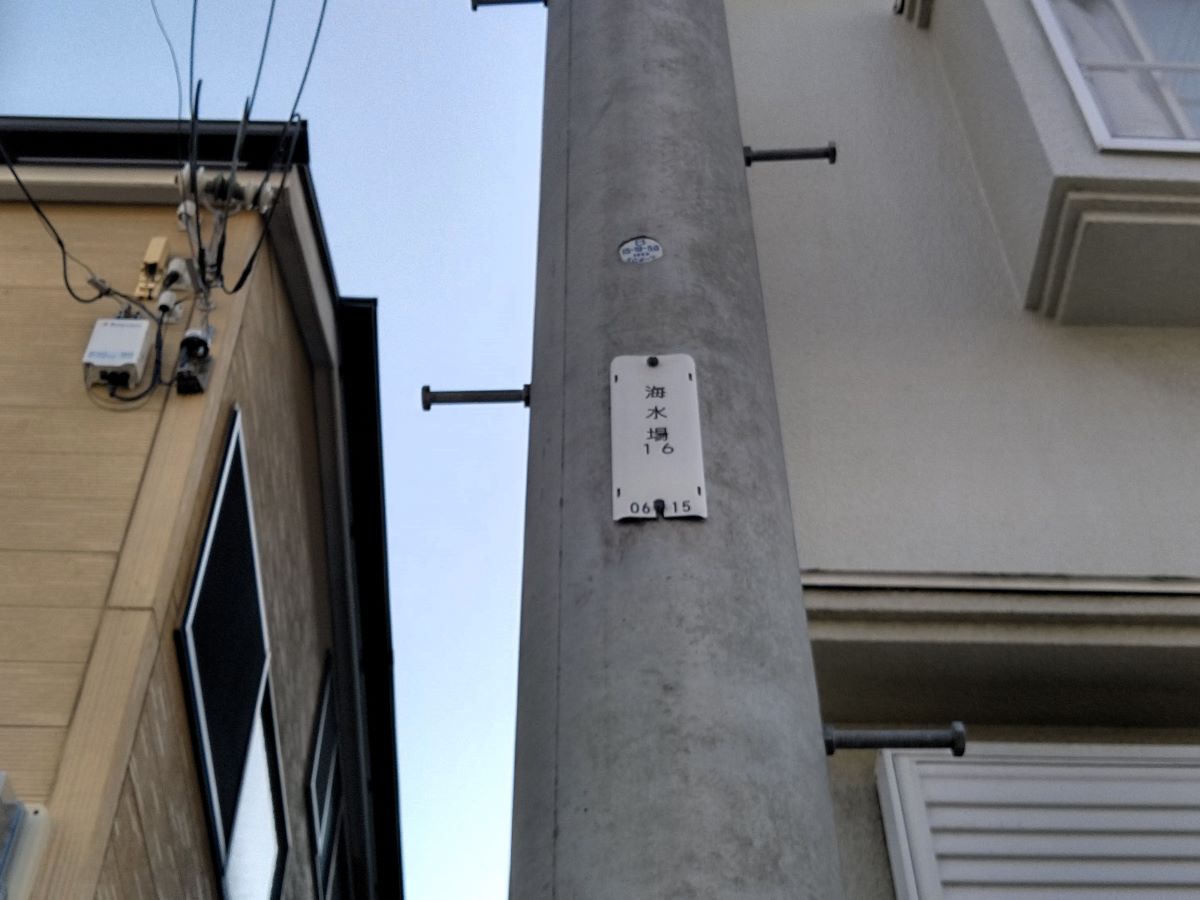 かつてはここに海水浴場があったそうで、浜甲子園でこんな電柱も見つけました。