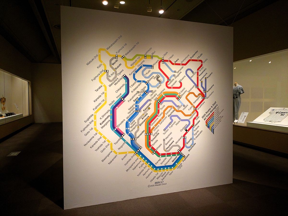 選手や監督名を用いた「路線図」など、ユニークな作品もあります。