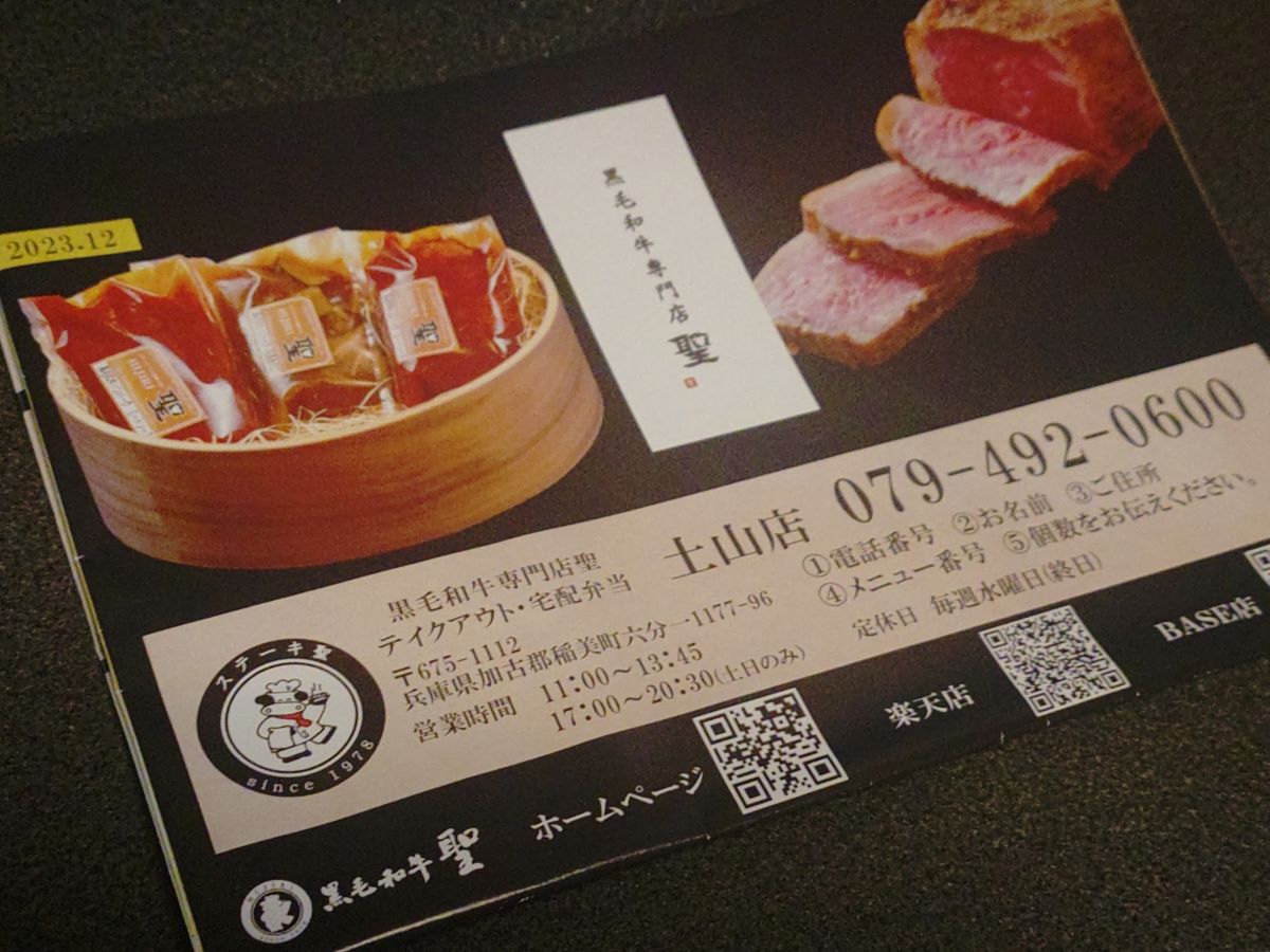 聖の隠れ家マルシェで、運営しているのは加古郡稲美町に本店を持つ1978年創業のステーキハウス、黒毛和牛 聖。