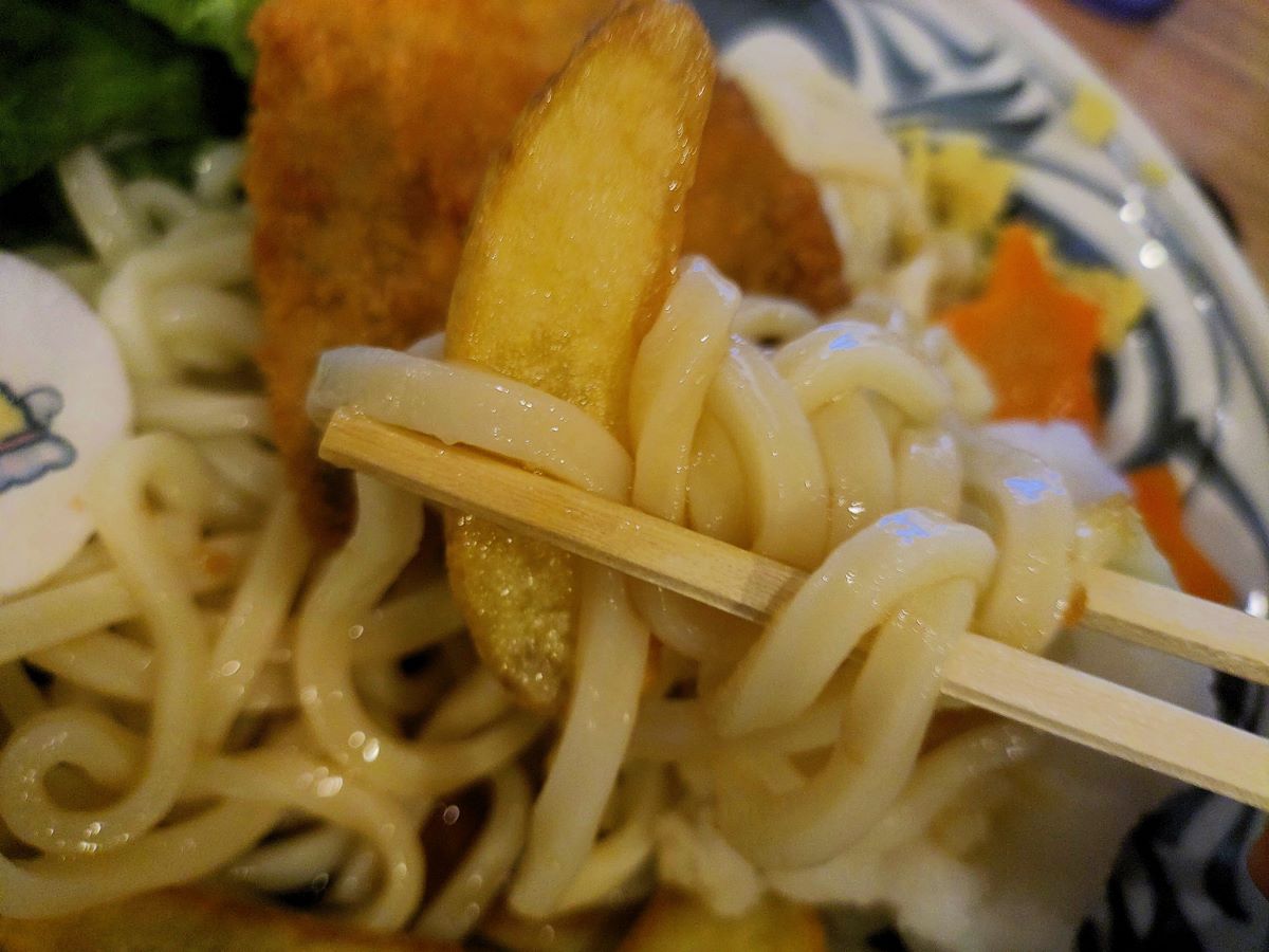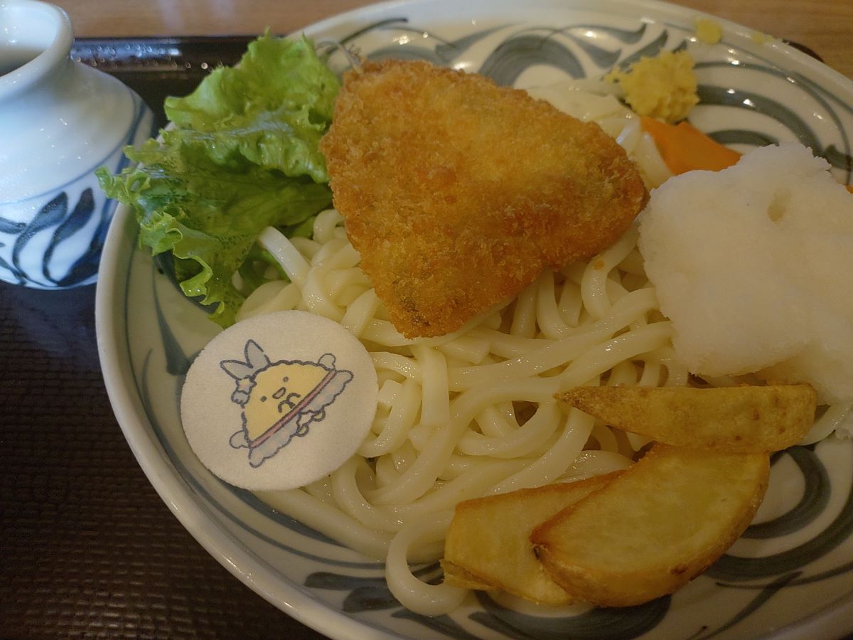 このキャラクターにちなんだメニューの中から、今回はあじふらいのしっぽ おろしうどんをいただきました。