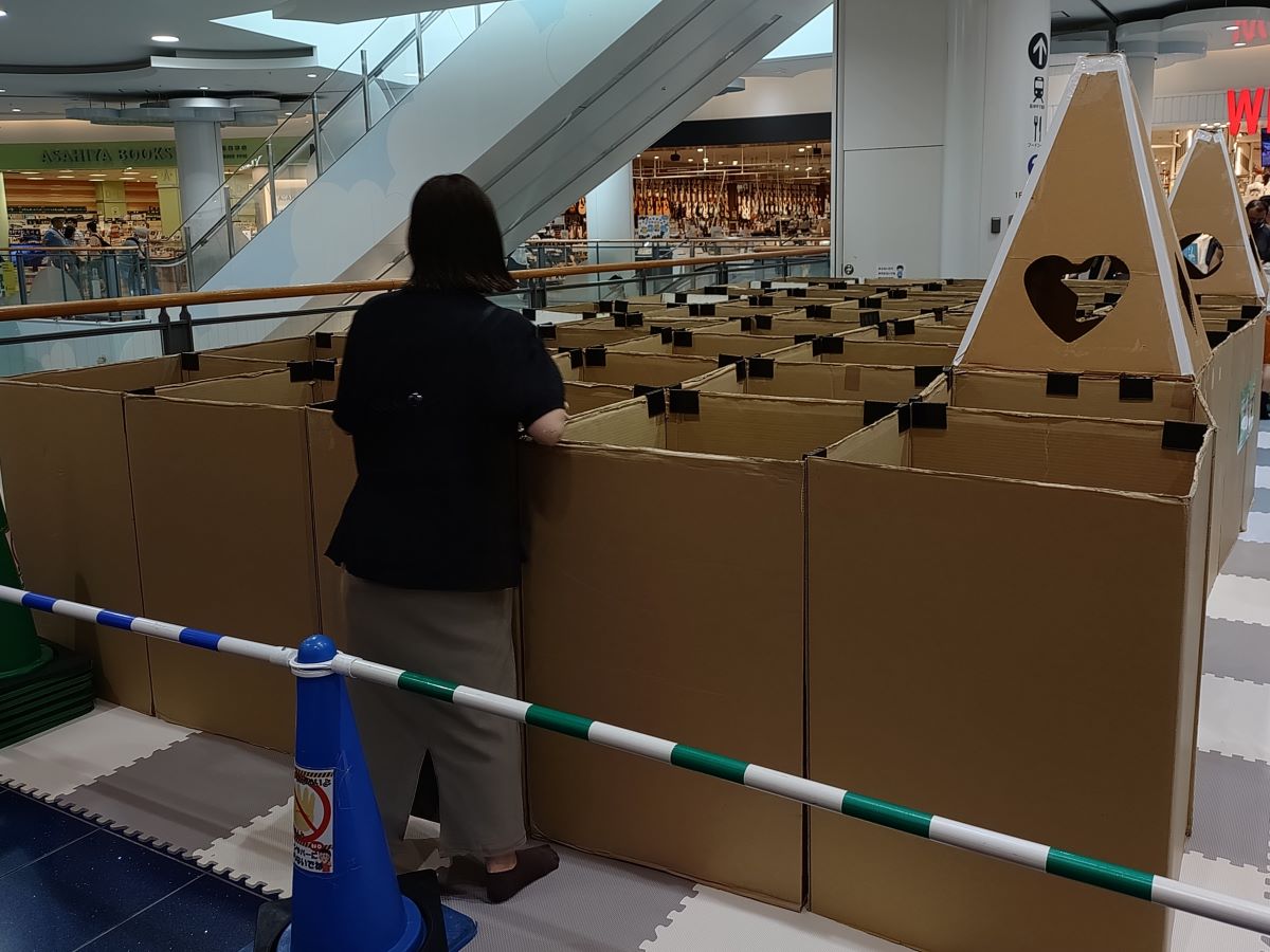 一方、オーシャンライドコートの2階には「たのしくあそぼう!ダンボールめいろ」のブースも。