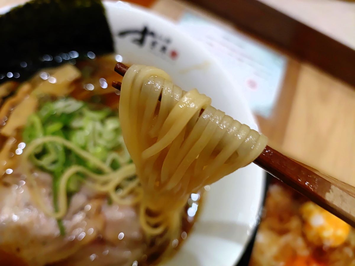 麺はストレートの細麺で、スープの醤油味を引き立ててくれます。