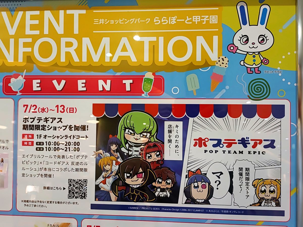 【西宮市】「キミのために店舗を開く―」ららぽーと甲子園で「ポプテギアス」の期間限定ショップが、 7月13日まで営業されています♪