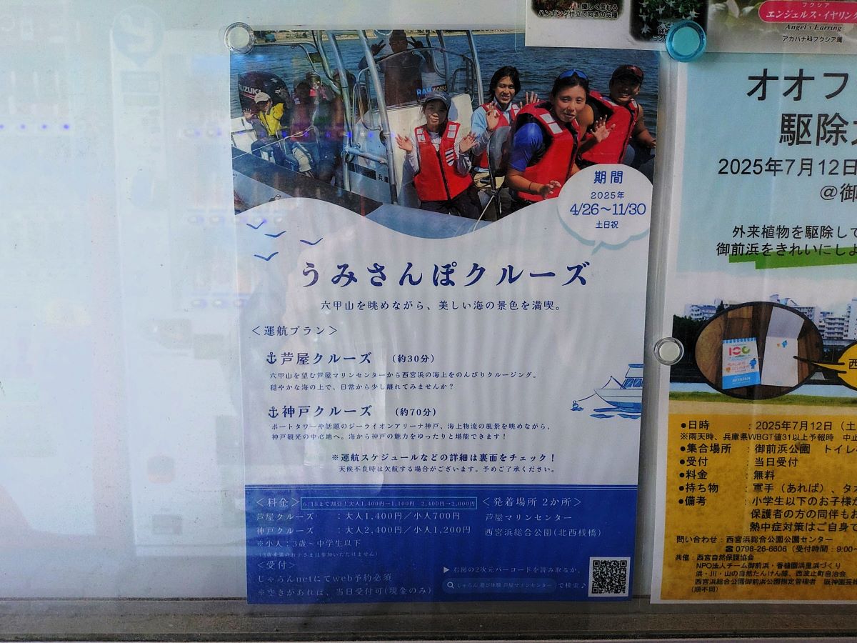 2025年5月10日(土)から、土日祝限定で芦屋海洋体育館(芦屋マリンセンター)がボートクルーズ船「うみさんぽクルーズ」の運行を行っています。