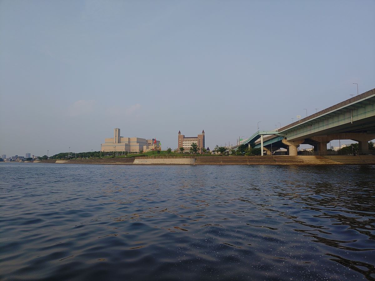 出航すると、左手にみやっこキッズダムを見ながら進んで行きます。