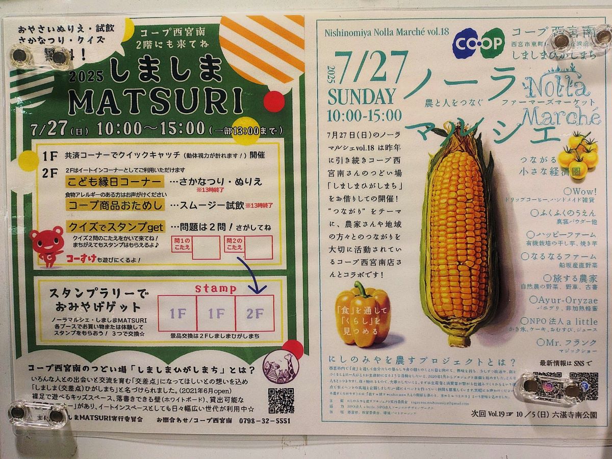 【西宮市】7月27日、コープ西宮南で「にしのみやノーラ マルシェVol.18」と「2025 しましまMATSURI」が同時開催!暑さ対策で、室内でのイベントとなります!!