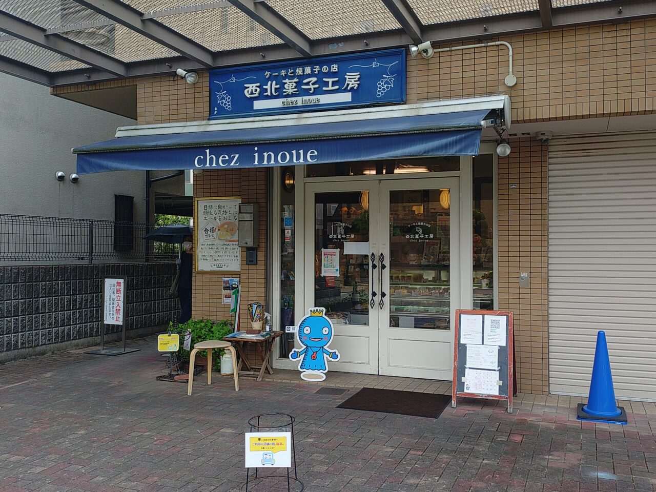 駅北西にある西北菓子工房 シェ イノウエでは「ようかいここだけシール」のプレゼントなど、