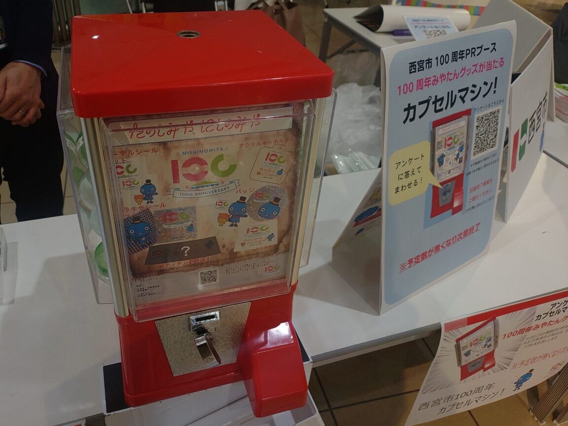こちらでは阪神タイガースリーグ優勝記念グッズ・阪神電車グッズ・和洋菓子の販売や、西宮市100周年カプセルマシーンも置かれていました。