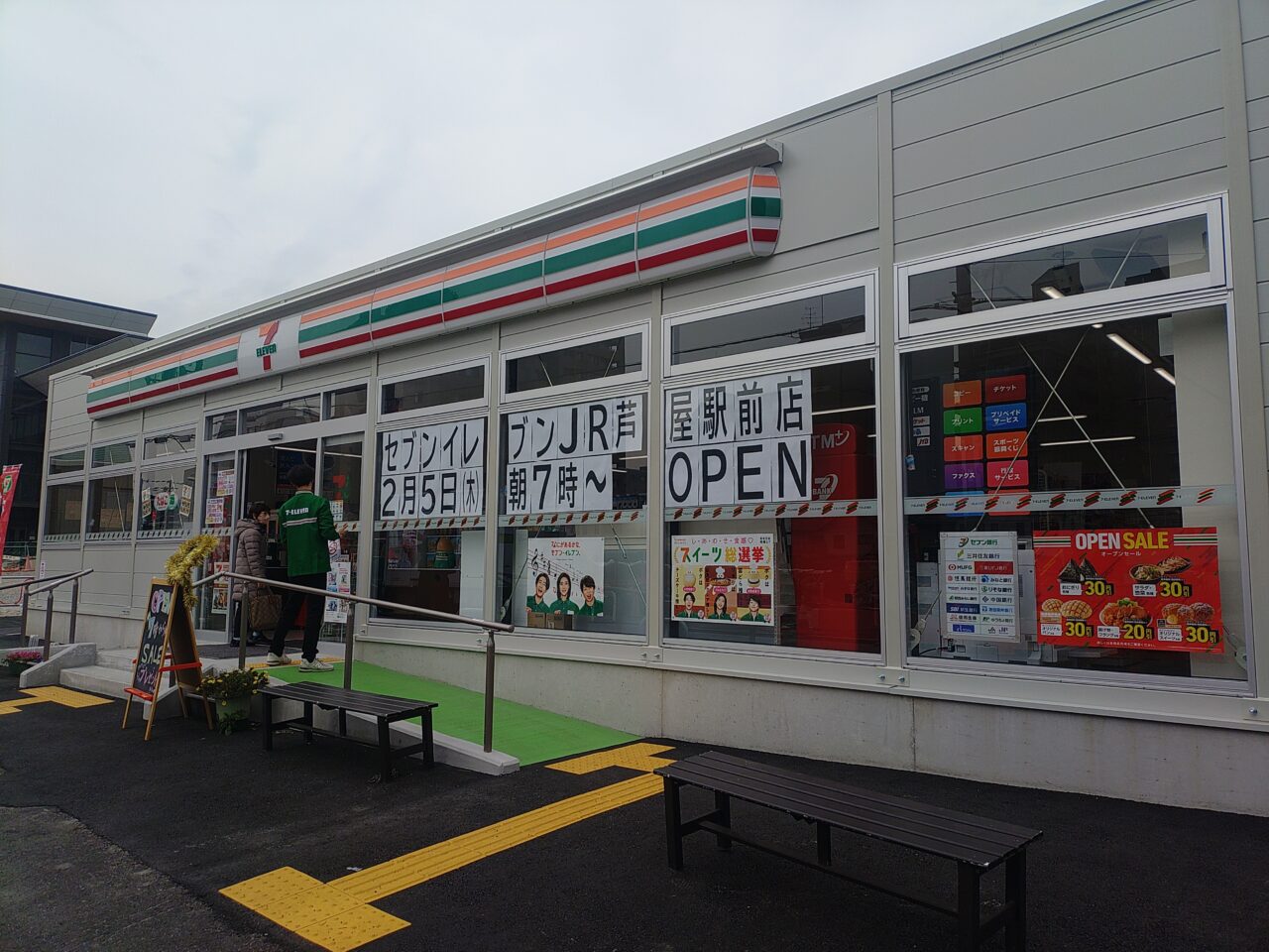 【芦屋市】「セブン-イレブン JR芦屋駅前店」が、道を挟んで向かいの駅舎側に移転!2月5日にグランドオープンしています。
