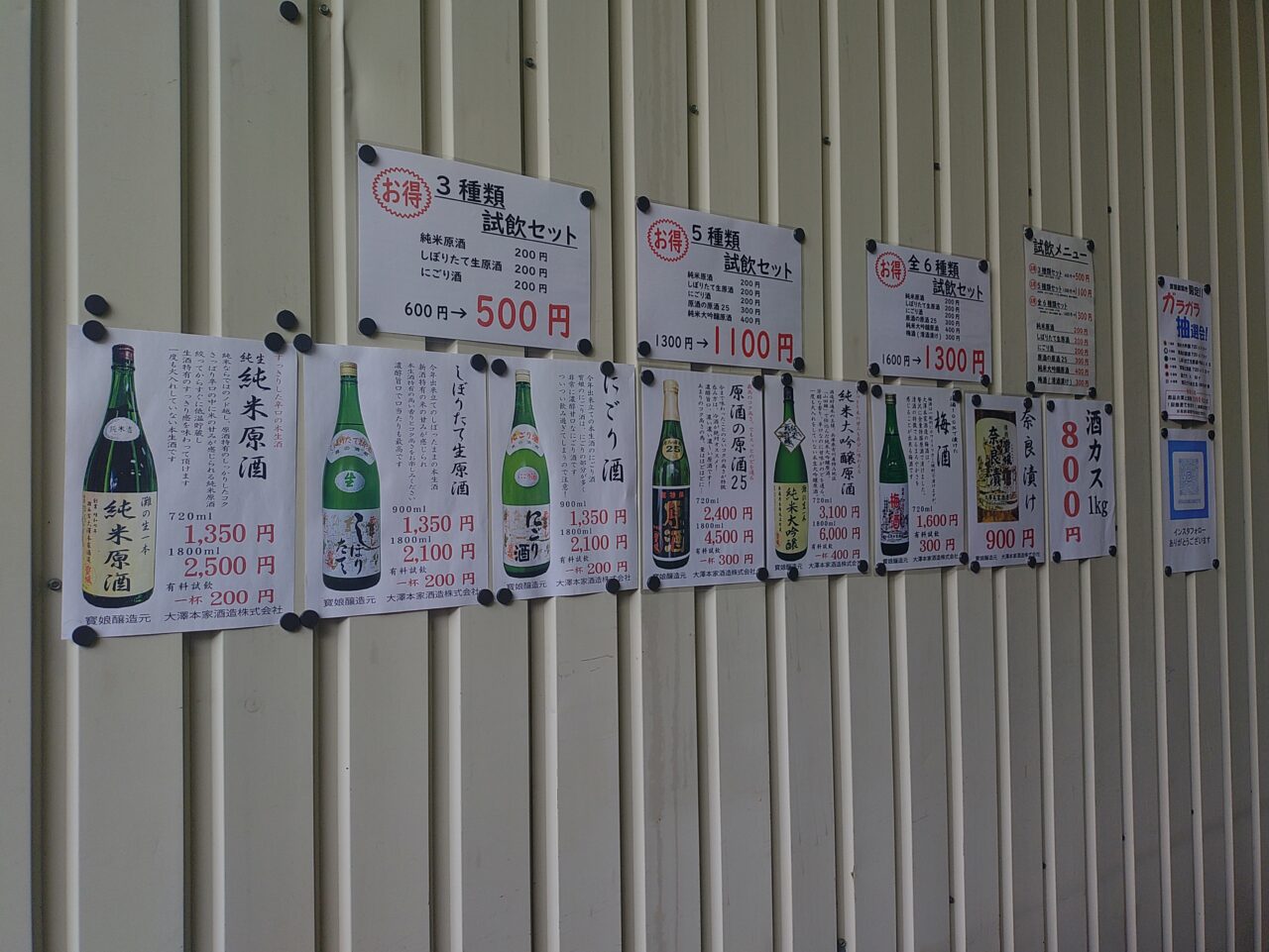 約30分程待って、3種セット(純米原酒・しぼりたて生原酒・にごり酒)と梅酒を購入。
