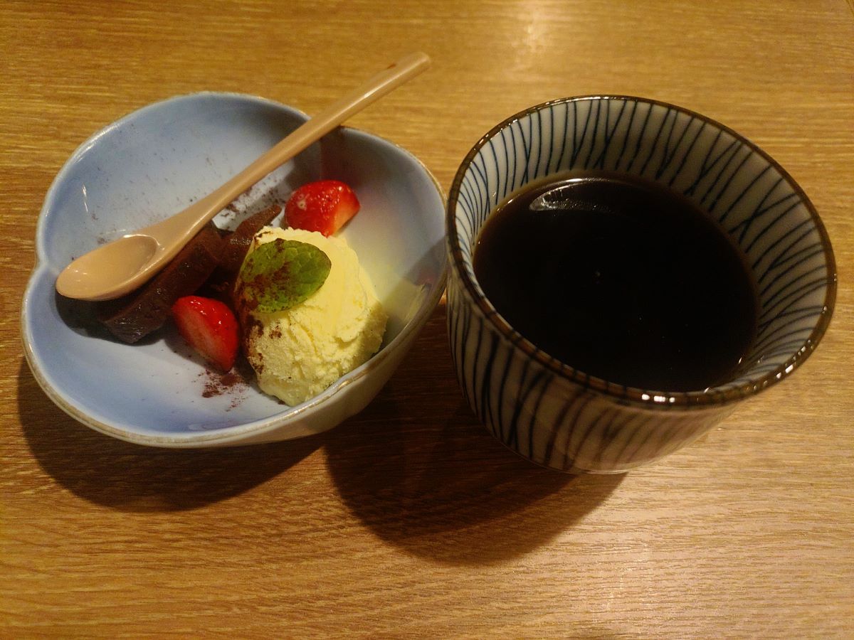 最後に出てきたデザートは、バニラアイスとショコラ羊羹。