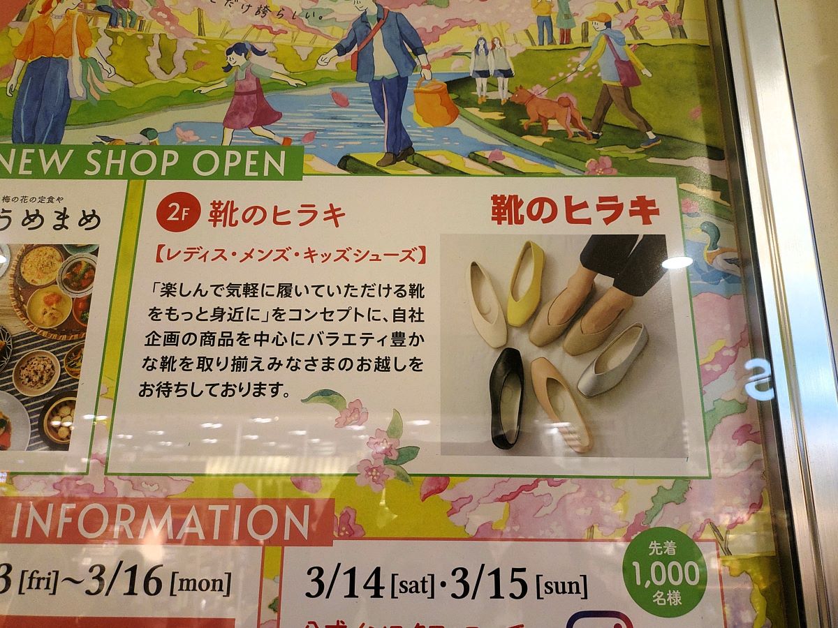 駅構内のポスターで、靴のヒラキ エビスタ西宮店の開店予告を発見!