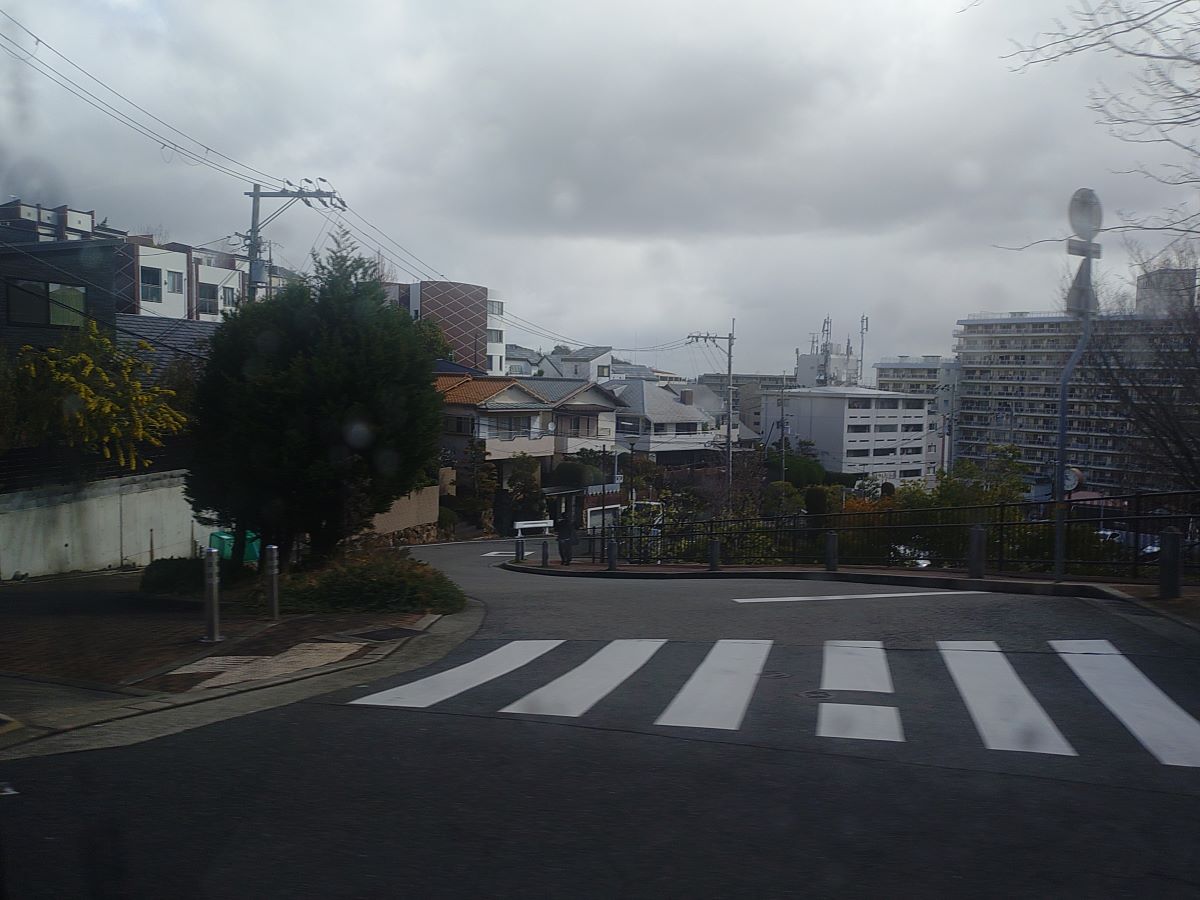 乗ったのはB 西山ルートで、発車すると右折して急な勾配を登っていきます。