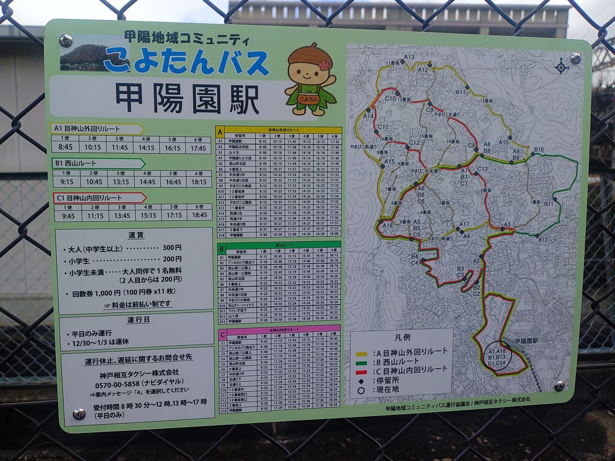 どうやら2024年から実証実験が行われていた甲陽園地域のコミュニティバスが「こよたんバス」として、3月2日(月)から本格運行を開始したようです。