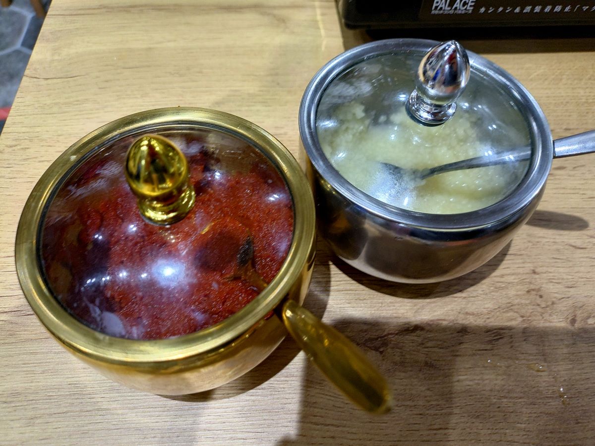 あっさり目のスープなので、コチュジャンもしくは胡麻と、好みのタレで味をつけられます。