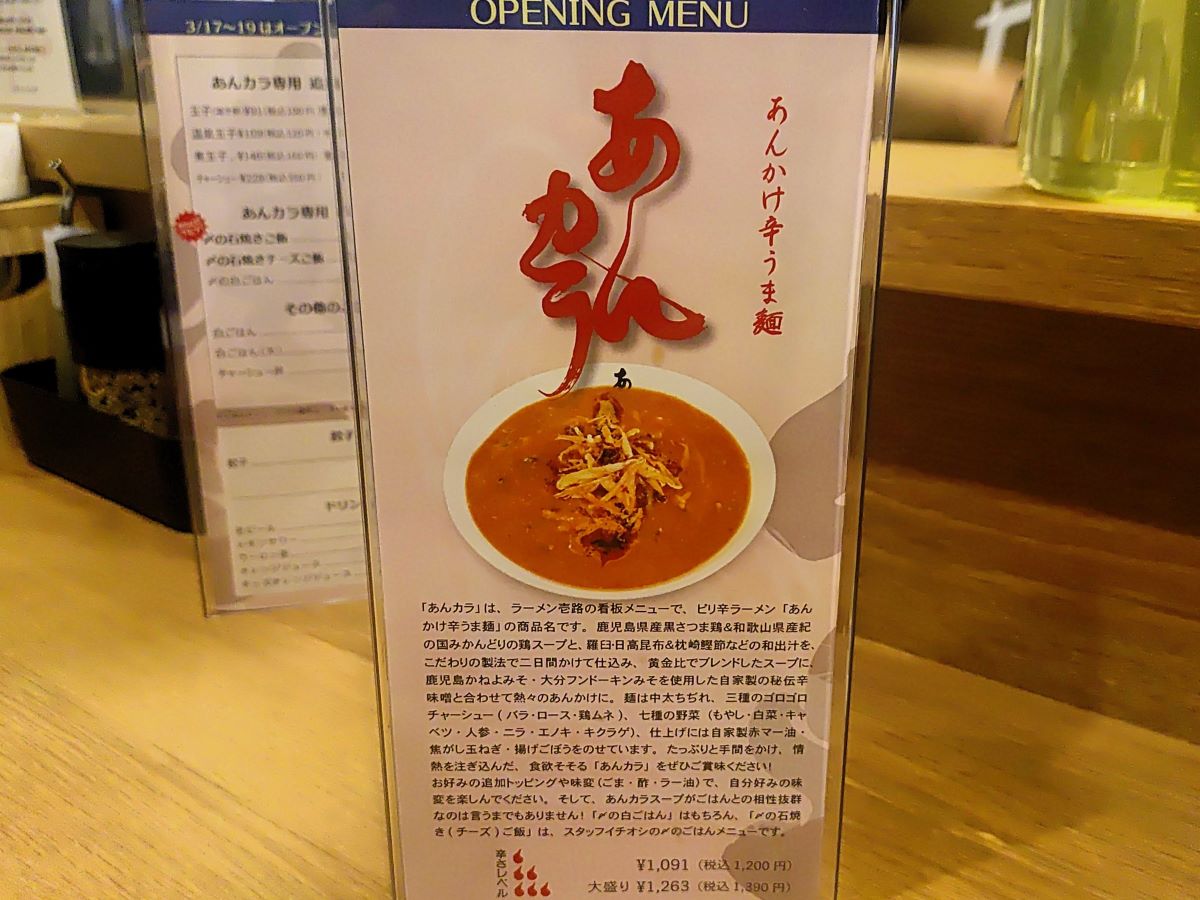 あんカラ壱路で、お店の方によると3月17日(火)にオープンしたばかりのようです。