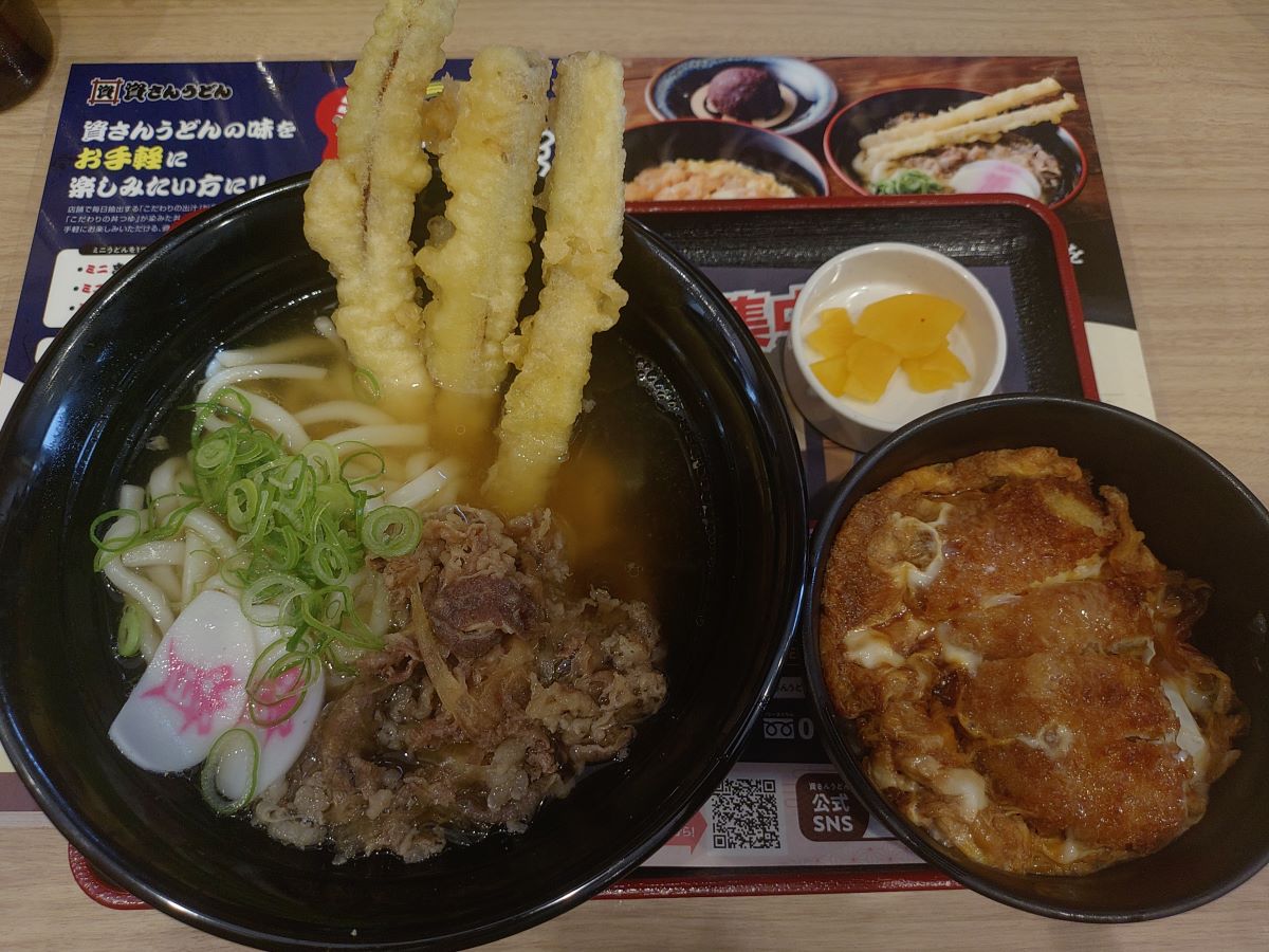 今回はその肉ごぼ天うどんと、ミニカツとじ丼をセットでいただきました。