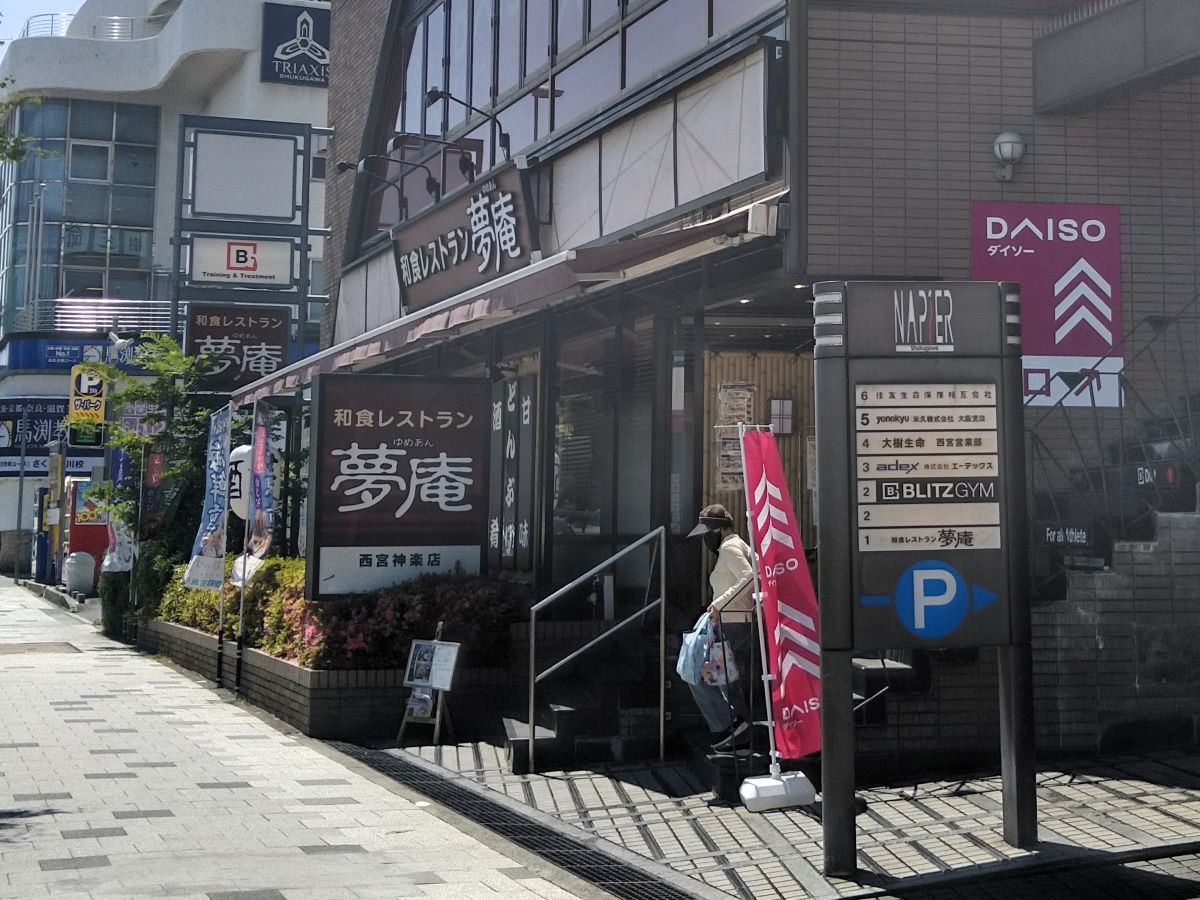 2026年2月に閉店した、国道2号線沿いでJRさくら夙川駅近くのビルにあった和食レストラン 夢庵 西宮神楽店。
