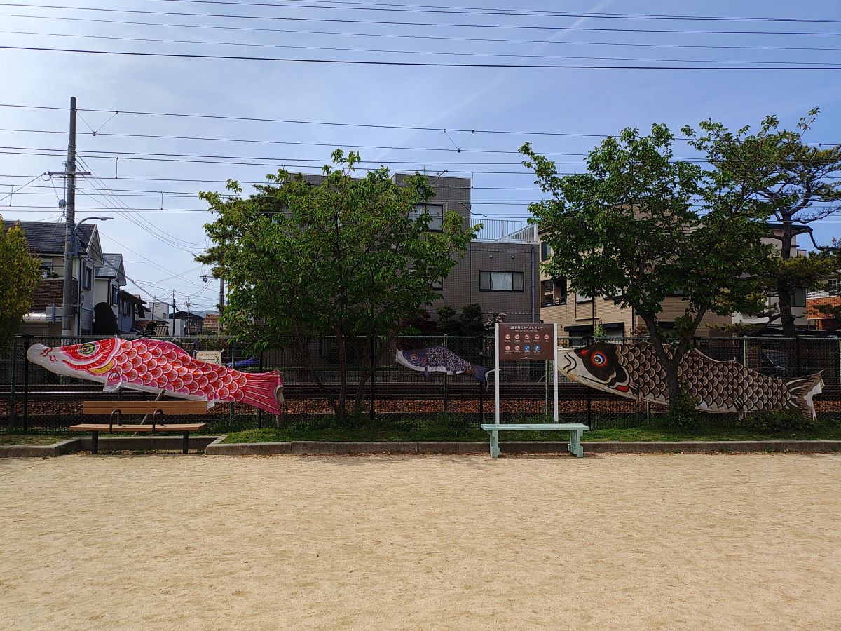 門戸厄神駅とのほぼ中間付近にある、北口町1号公園で今年も鯉のぼりを確認!