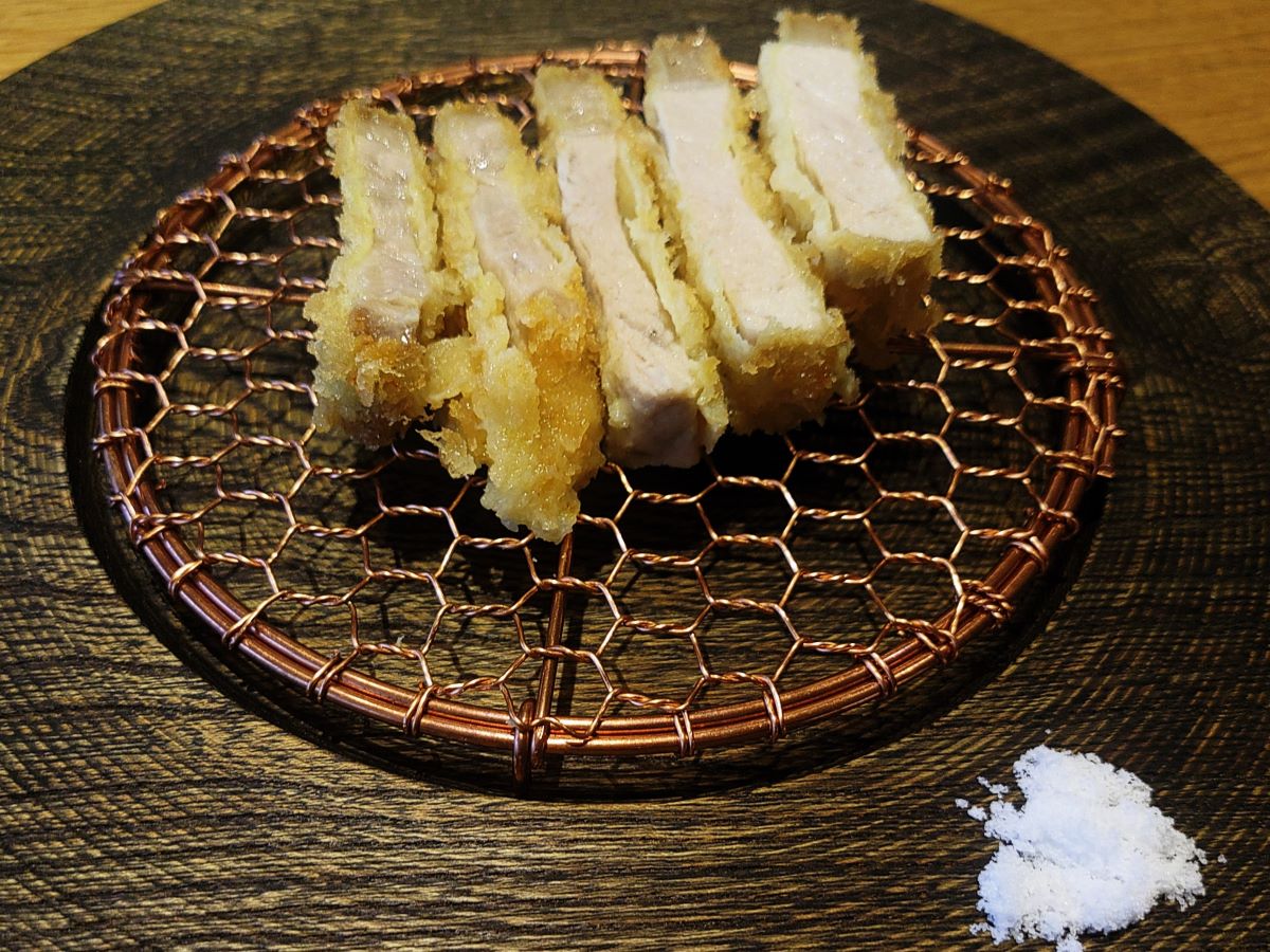 低温で、およそ20分かけてじっくり揚げられているので、お肉がしっとりしています。