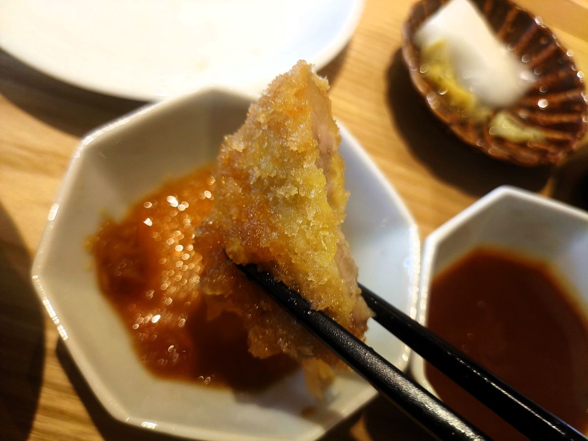 宮崎産の醤油を使ったおろしだれ、京都産のソースと味変出来るのも嬉しいですね。